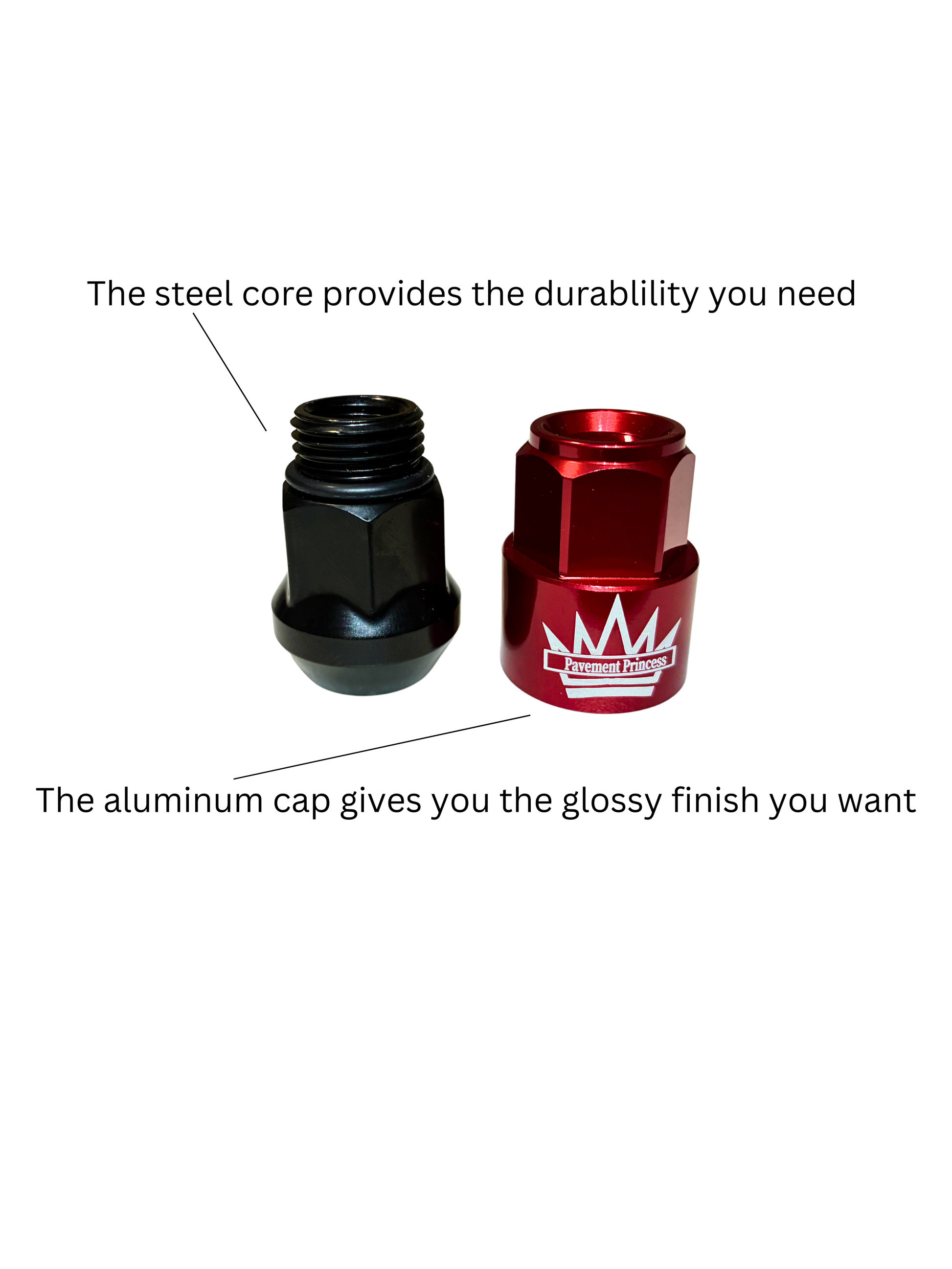 - SLEEK AND DURABLE - Topped with a stylish aluminum cap, these lug nuts combine aesthetics with durability.