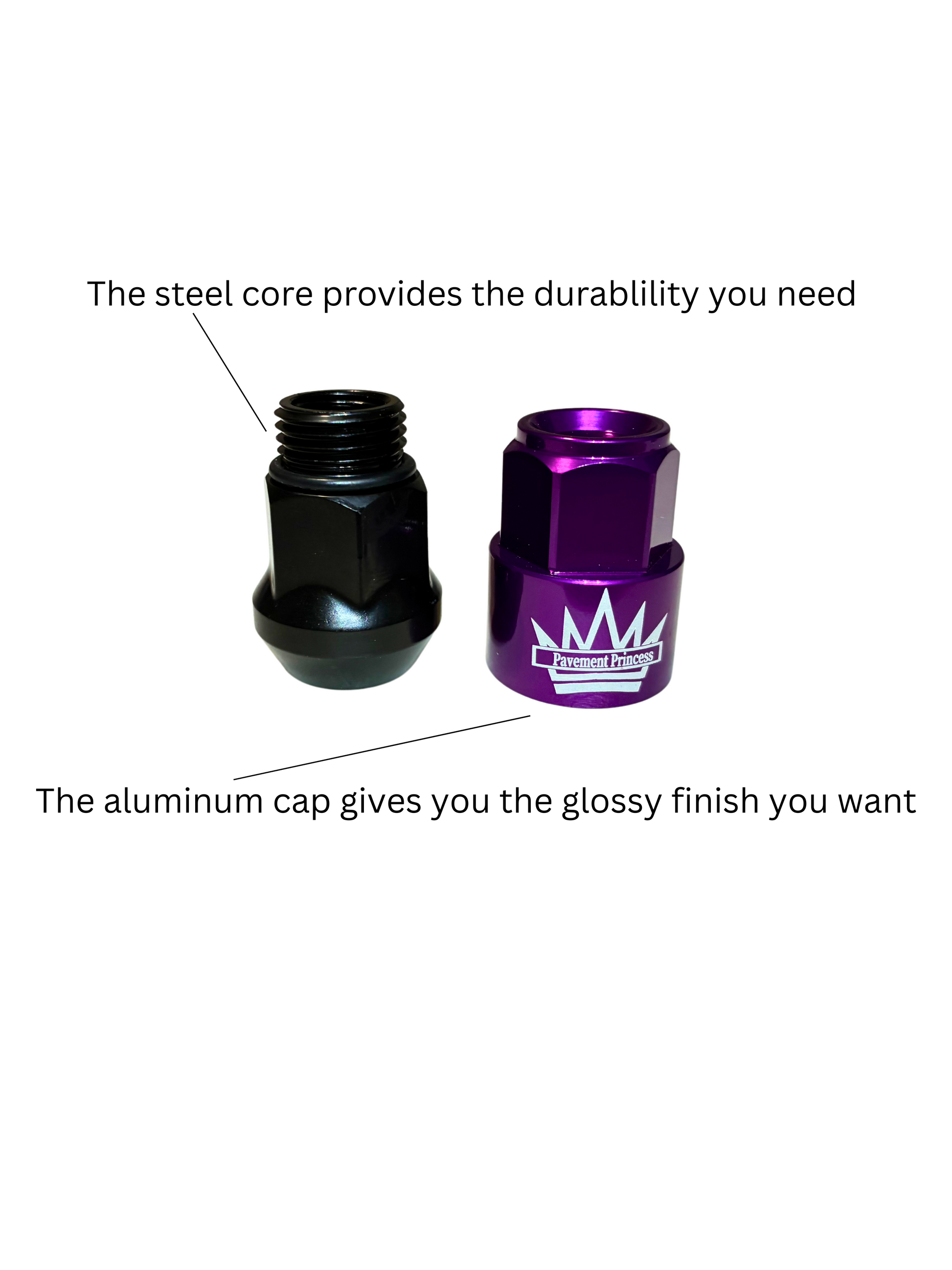- SLEEK AND DURABLE - Topped with a stylish aluminum cap, these lug nuts combine aesthetics with durability.